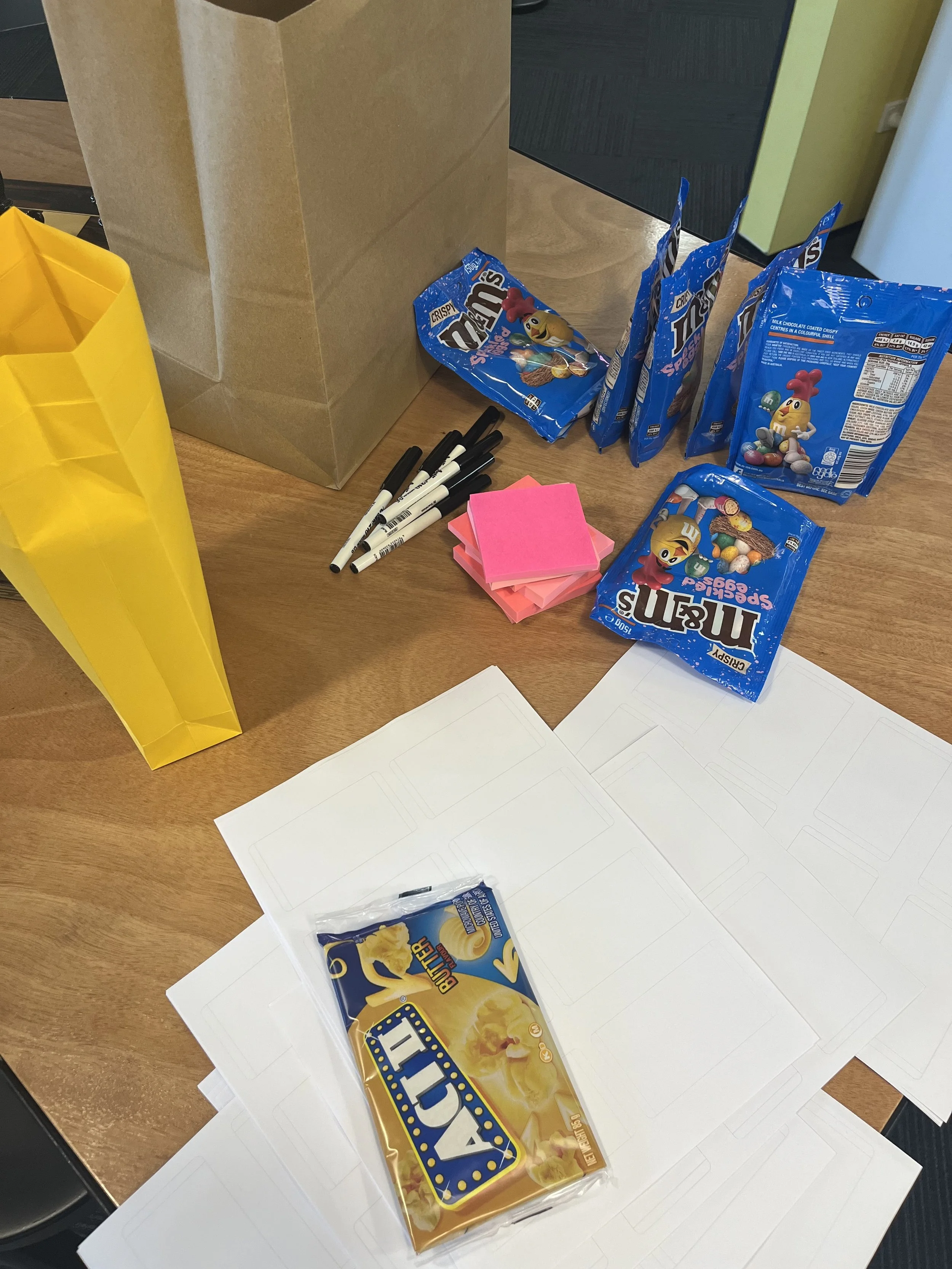 We didn’t want to loose the aspects of an in-person design sprint that fostered creativity, and encouraged participants to sketch on paper, and use physical post-its to capture ideas. I organised packages to be delivered to each participants house that included printed templates for wire framing, pens and post its, and of course, Easter treats to keep energy levels up!